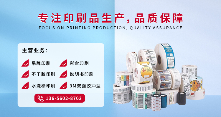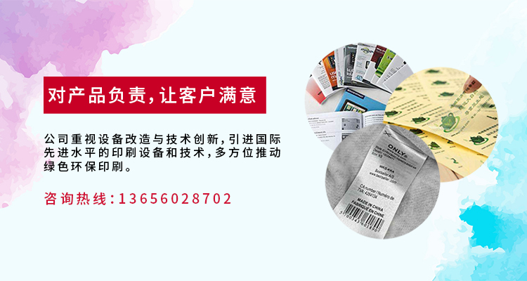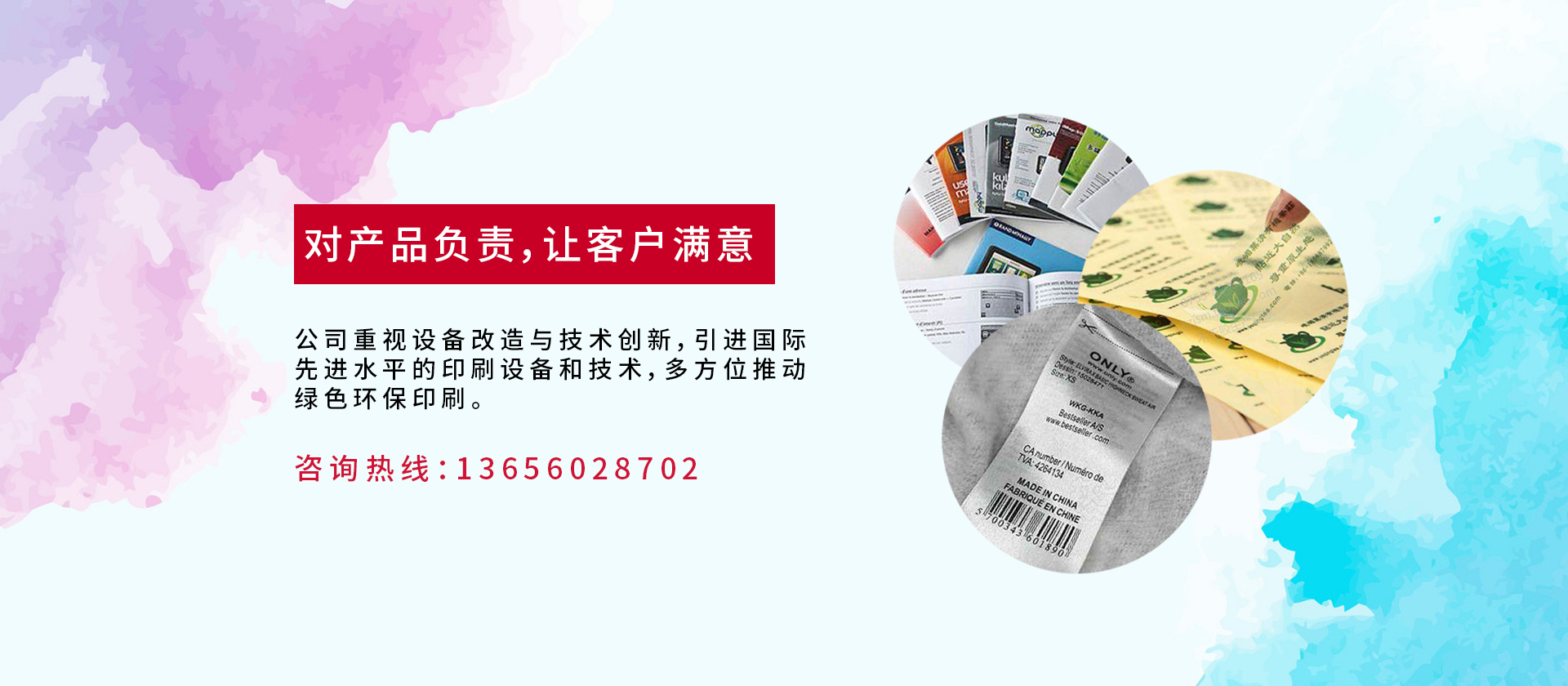 公司主營業務包括:不干膠印刷、說明書印刷、吊牌印刷、水洗標印刷、彩盒印刷、3M雙面膠沖型等。經營范圍:洗標、緞帶標、貼紙、吊牌、流水碼、不干膠、3M雙面膠、說明書、條碼、吸塑卡、彩盒、軟管帖、瓶貼、膜內貼、收縮膜等卷裝貼紙。